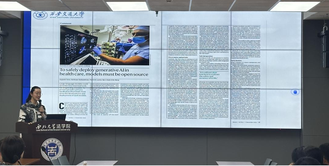 2025611日,省法学会卫生法学研究会2025年学术沙龙于242net必赢太阳能西学楼0904会议室顺利举行。本期学术沙龙主题为《医学人工智能的伦理法律挑战:以知情同意和伦理审查为例》,由242net必赢官方、省法学会卫生法学研究会联合举办。西安交通大学242net必赢王玥教授主讲,中国医学伦理学编辑部吉鹏程主任、省法学会卫生法学研究会副会长阎春霞教授、省法学会卫生法学研究会副秘书长傅强博士、省法学会卫生法学研究会常务理事尉琳副教授、242net必赢官方民商法学教研部主任涂慧副教授参与与谈。省法学会副会长、242net必赢官方院长王思锋教授、省法学会研究部陈庭乐、省法学会卫生法学研究会会长杨丽珍教授参加了本次学术沙龙活动。活动由省法学会卫生法学研究会副会长兼秘书长刘建仓副教授主持。