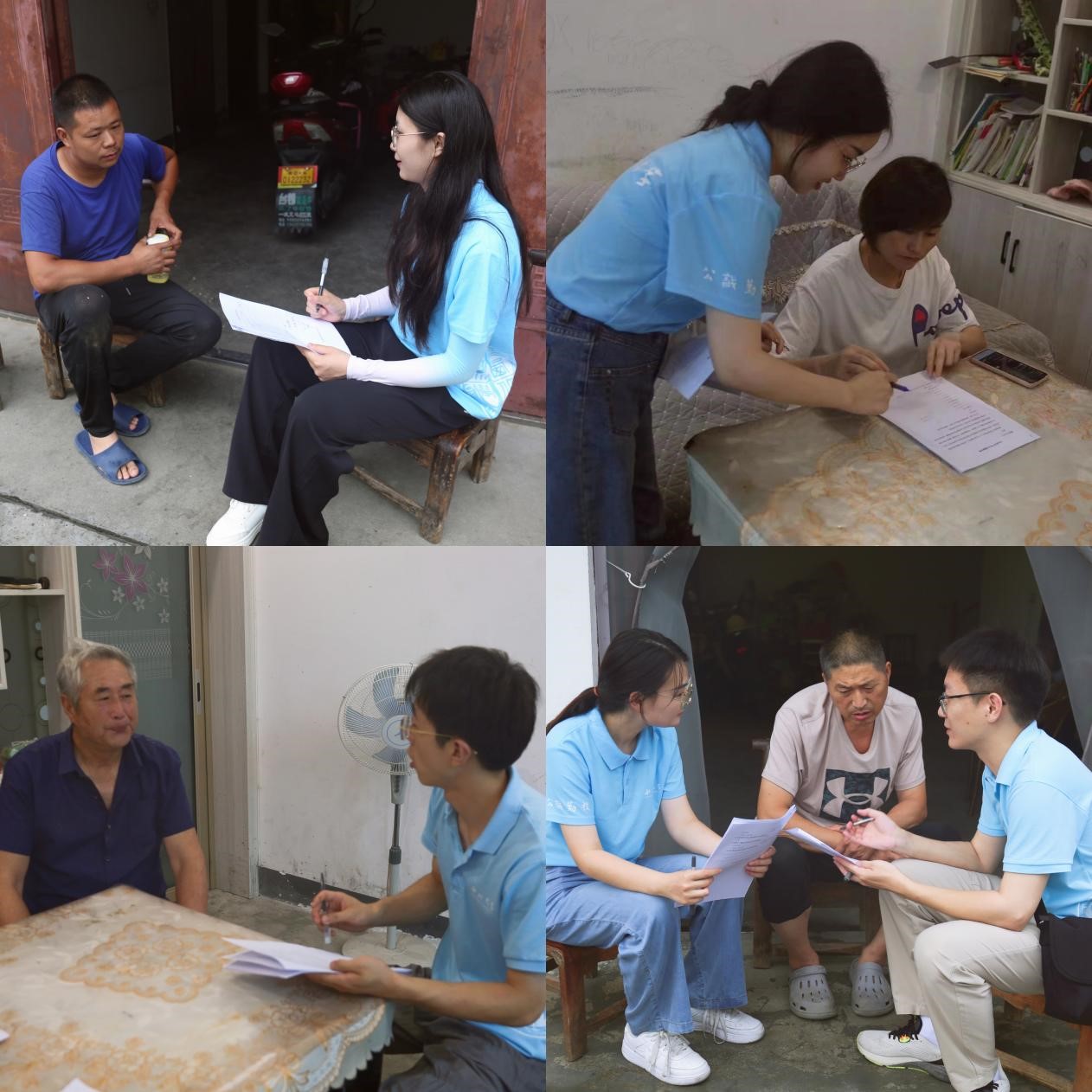 紧接着,实践调研团分为五个小组,在村干部的带领下分别走访了二十余户长安镇当地农户。在入户调研过程中,成员们饱含热情,细致观察,积极与村民们沟通交谈。通过对农户知识产权知识了解状况、当地茶产业区域优势、涉农知识产权维权途径等方面的了解,感受到当地知识产权助农政策落实与推进的显著成效,村民们普遍重视用知识产权维护自己的权益,也显示出法治助农的实际效果。